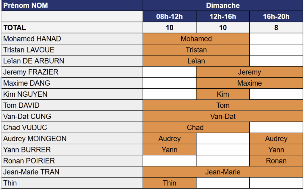 • Horaires